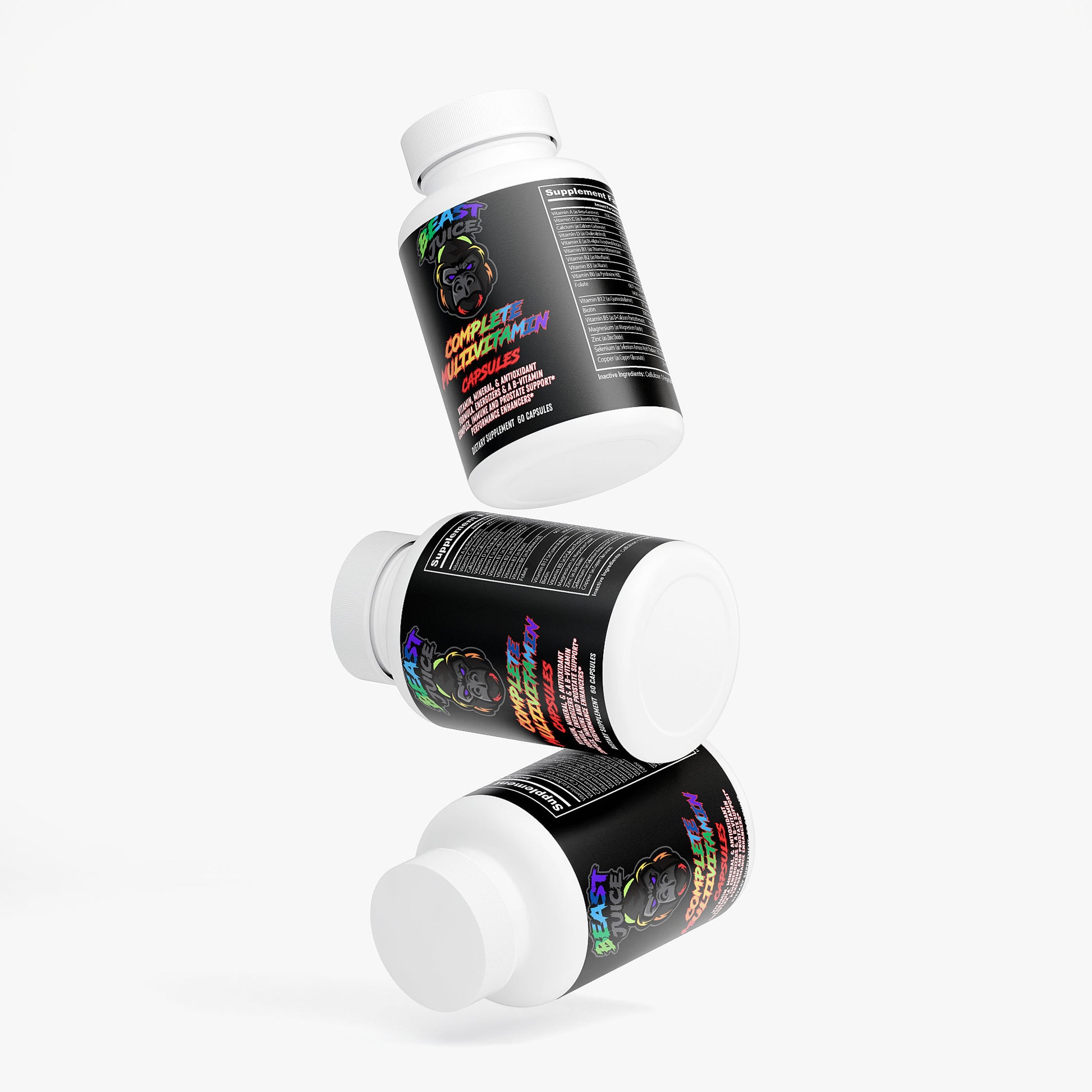 Elevate your health journey with Beast Juice Complete Multivitamin Capsules, meticulously crafted to support your overall wellness. Packed with a comprehensive blend of essential vitamins, minerals, and specialty compounds, our multivitamin is designed to maintain and enhance bodily functions. Whether you're looking to boost your energy levels, fortify your immune system, or ensure a balanced nutrient intake, our Complete Multivitamin is your daily ally for optimal health.